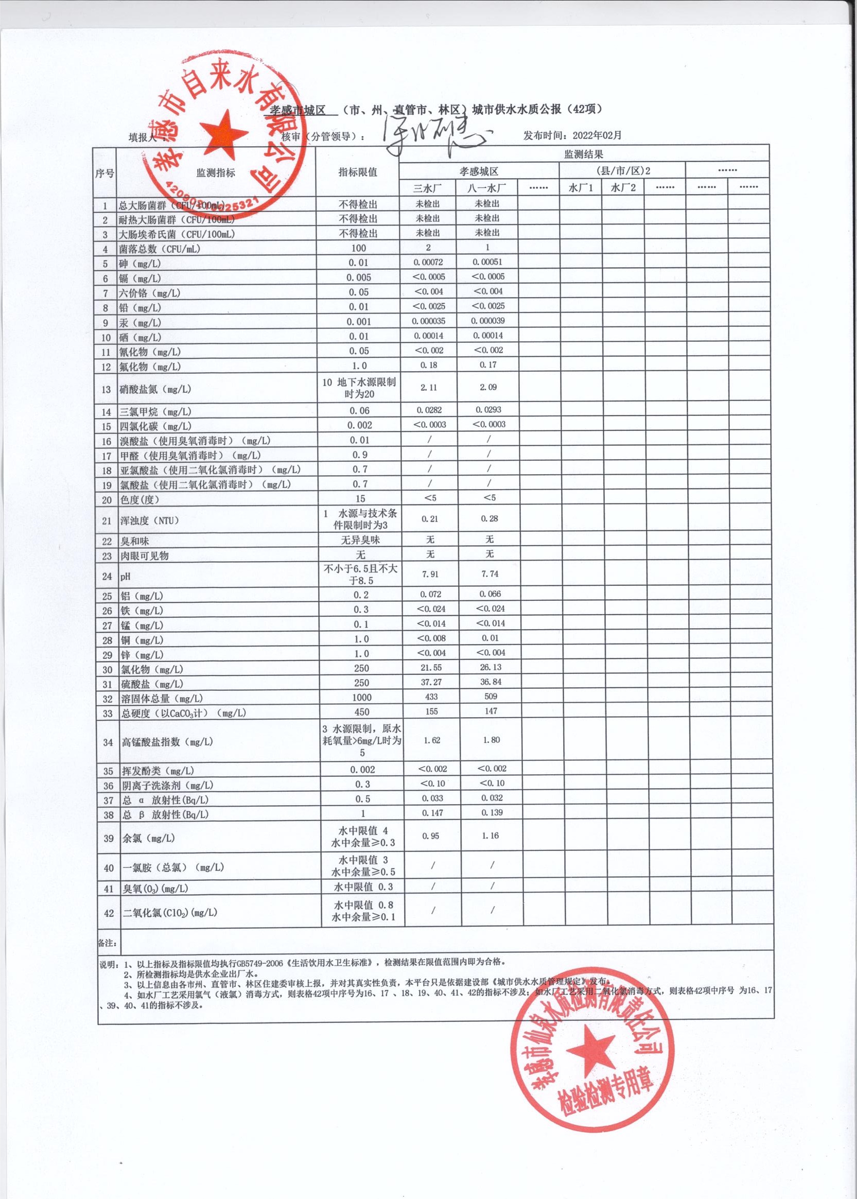 2022年2月水質(zhì)報告