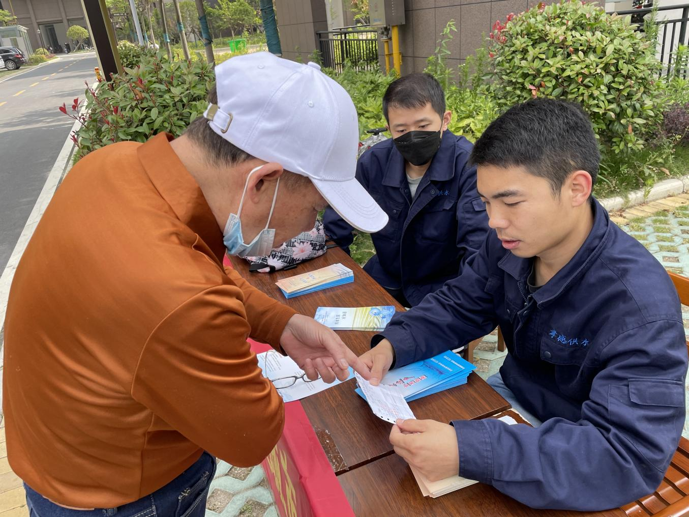 5月18日上午,公司在文昌閣社區開(kāi)展以“建設節水城市,推動(dòng)綠色低碳發(fā)展”為主題的節約用水宣傳活動(dòng)?;顒?dòng)現場(chǎng),通過(guò)設置宣傳展臺、拉橫幅、發(fā)放節水手冊、宣傳單等方式,向用戶(hù)普及生活節水技巧,還義務(wù)到用戶(hù)家中查看水表、水管等等供水設施有無(wú)故障,居民們對此紛紛稱(chēng)贊。