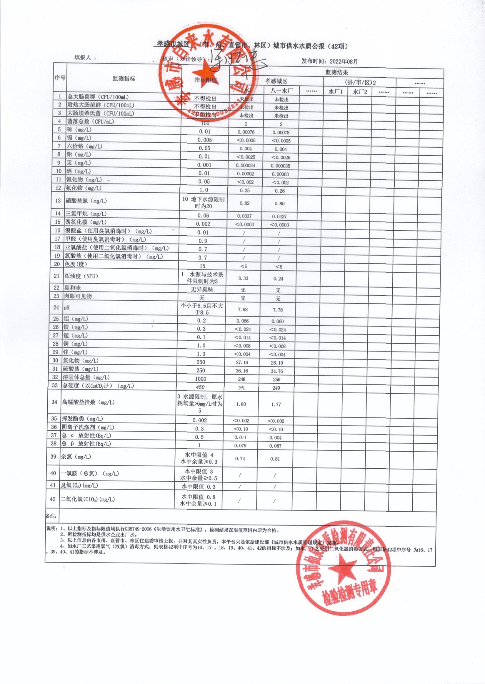 2022年8月水質(zhì)報告