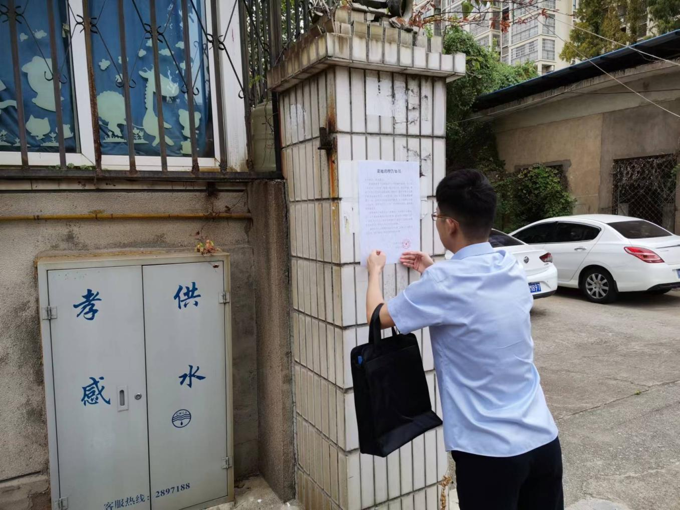 檢查小組一行到一水廠(chǎng)張貼了《菜地清理告知書(shū)》并對水廠(chǎng)宿舍樓周邊進(jìn)行察看。檢查發(fā)現,除一水廠(chǎng)復式樓院墻邊小菜園外,原廢棄清水庫上面也有居民種菜,存在巨大安全隱患。