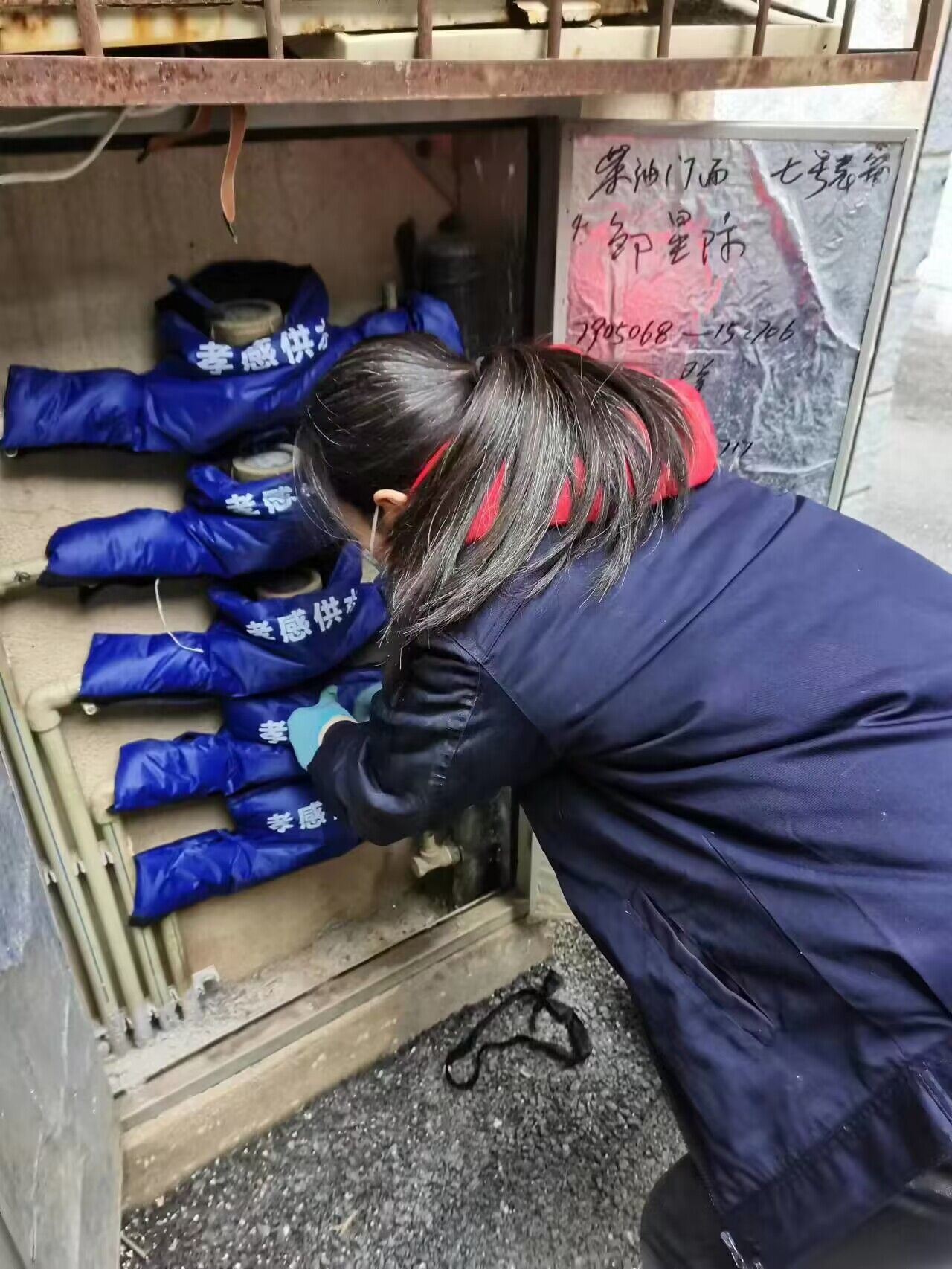 客戶(hù)服務(wù)部提前準備了充足的保溫防凍物資,對供水設備、設施采取“穿衣戴帽”等方式,做好防凍保溫措施。對水表池、管道井和重點(diǎn)區位的公共供水管道進(jìn)行了普查和維護。并做好供水管網(wǎng)及消防栓的巡檢維護,為易凍水管穿上了“棉衣”,對存在安全隱患的進(jìn)行維修和更換。