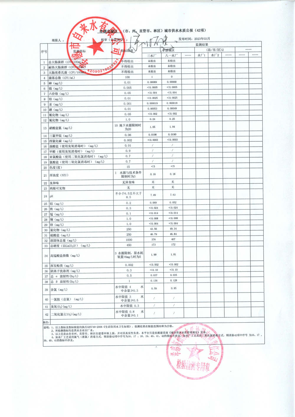 2023年3月水質(zhì)報告