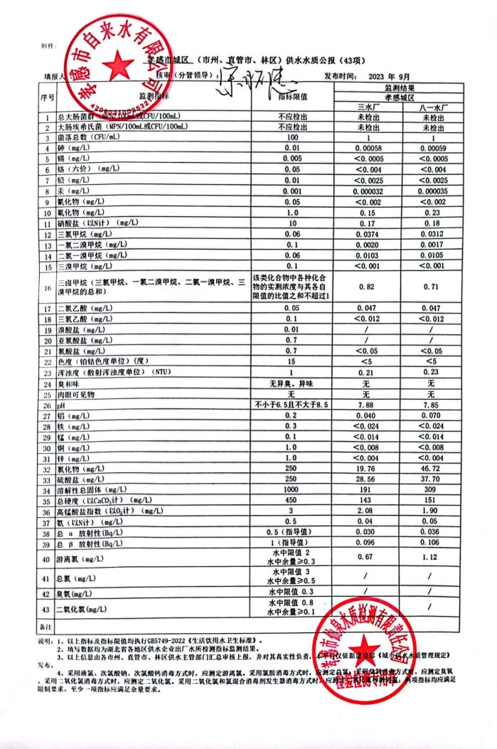 2023年9月水質(zhì)報告