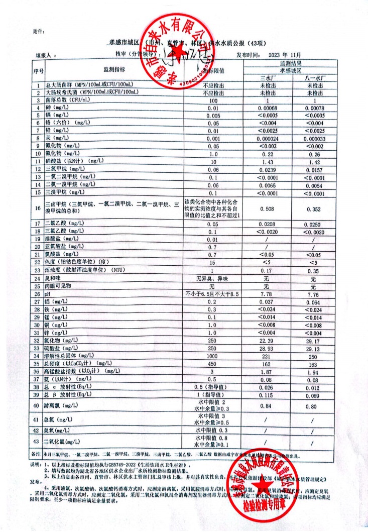 2023年11月水質(zhì)報告