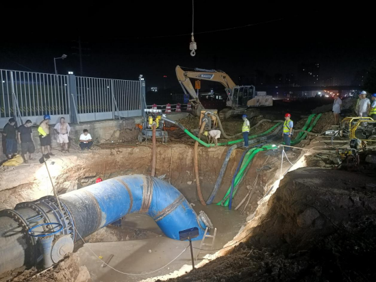 孝武大道、城南大道供水主管圓滿(mǎn)完成碰接