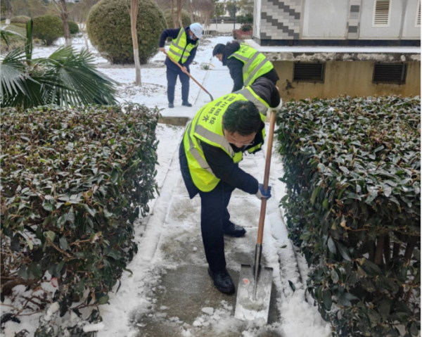 以雪為令,雪停路清。22日早上7點(diǎn),公司派出5名志愿服務(wù)隊員參與公交站臺掃雪除冰行動(dòng),有力保障群眾公交出行安全。除此之外,為了保證生產(chǎn)廠(chǎng)區道路暢通,公司采取有力舉措,仙女湖水廠(chǎng)、二水廠(chǎng)、一水廠(chǎng)、龍宮等多個(gè)辦公區域共調動(dòng)工作人員100余名和2臺鏟車(chē),采取撒鹽破冰、鏟雪等方式,確保生產(chǎn)及辦公區域道路暢通。