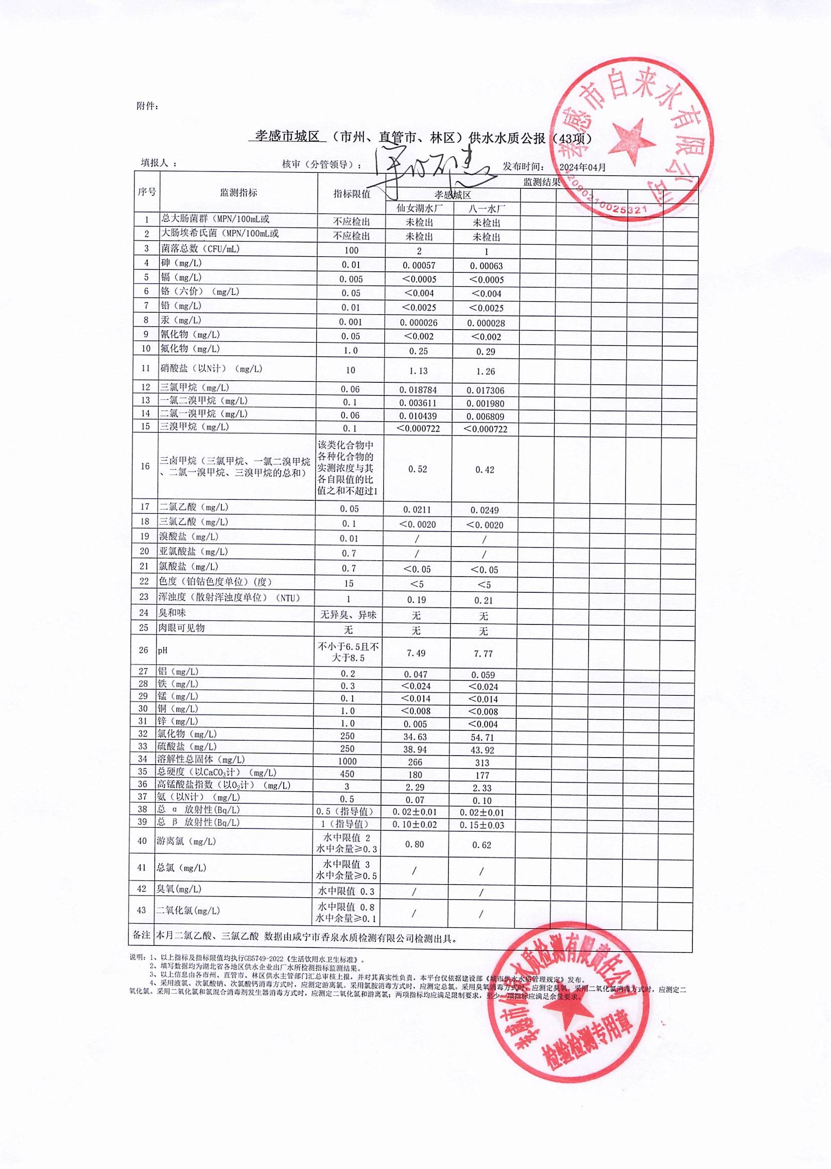 2024年4月水質(zhì)報告