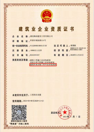 湖北暢泉建設工程有限公司繼去年晉升建筑工程施工總承包和市政公用工程施工總承包“雙貳級”資質(zhì)后,日前再傳捷報,該公司獲批“建筑機電安裝工程專(zhuān)業(yè)承包貳級資質(zhì)”,實(shí)現技術(shù)實(shí)力再提升、業(yè)務(wù)范圍再拓展,進(jìn)一步提高了市場(chǎng)競爭力。下一步,該公司將按照澴川國投堅持改革助推高速高質(zhì)量發(fā)展的總體部署,積極闖市場(chǎng)搶機遇,努力做大規模、做強實(shí)體,切實(shí)增強盈利能力與創(chuàng )業(yè)活力。