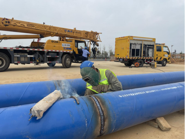 此次管線(xiàn)遷改共需對2條道路(復興大道、縱九路)4個(gè)路口共計1600余米的供水管線(xiàn)進(jìn)行遷改,該工程工期短、地下管線(xiàn)情況復雜,施工難度教高。為高效配合完成京港澳高速公路改擴建工程,全力保障復興大道、縱九路及周邊企業(yè)、用戶(hù)正常用水,公司克服一切困難,對高速擴建施工實(shí)施24小時(shí)全天候配合保障,并提前一個(gè)月組織專(zhuān)業(yè)技術(shù)人員多次進(jìn)行現場(chǎng)踏勘,細化管線(xiàn)施工連接點(diǎn)位置、停水時(shí)間、焊接點(diǎn)位和方式,制定周密管線(xiàn)遷改接水方案,為新舊管道連接敷設做好了充足準備。