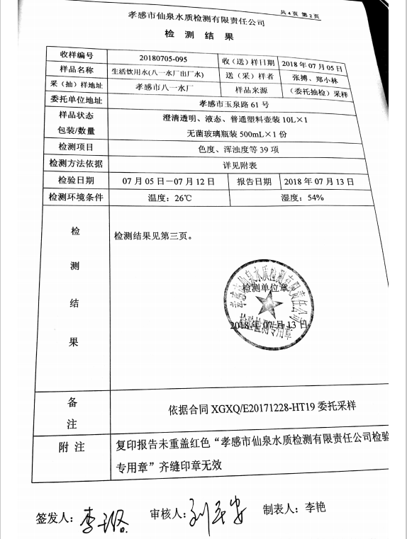 2018年7月水質(zhì)報告