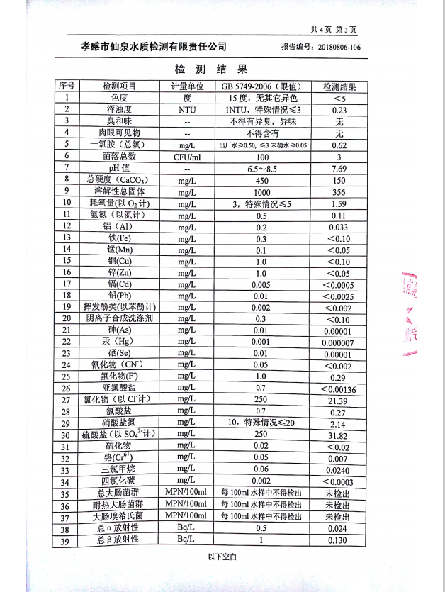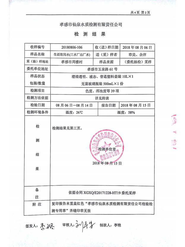 2018年8月水質(zhì)報告