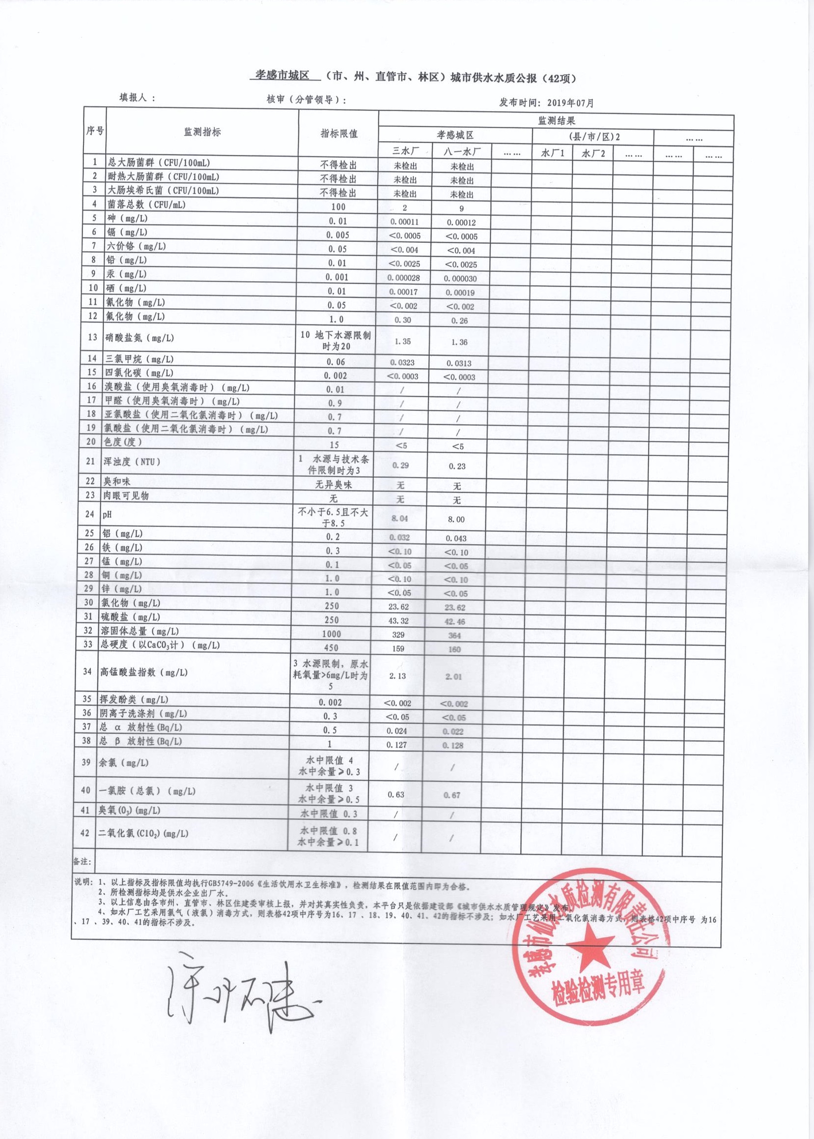 2019年7月水質(zhì)報告