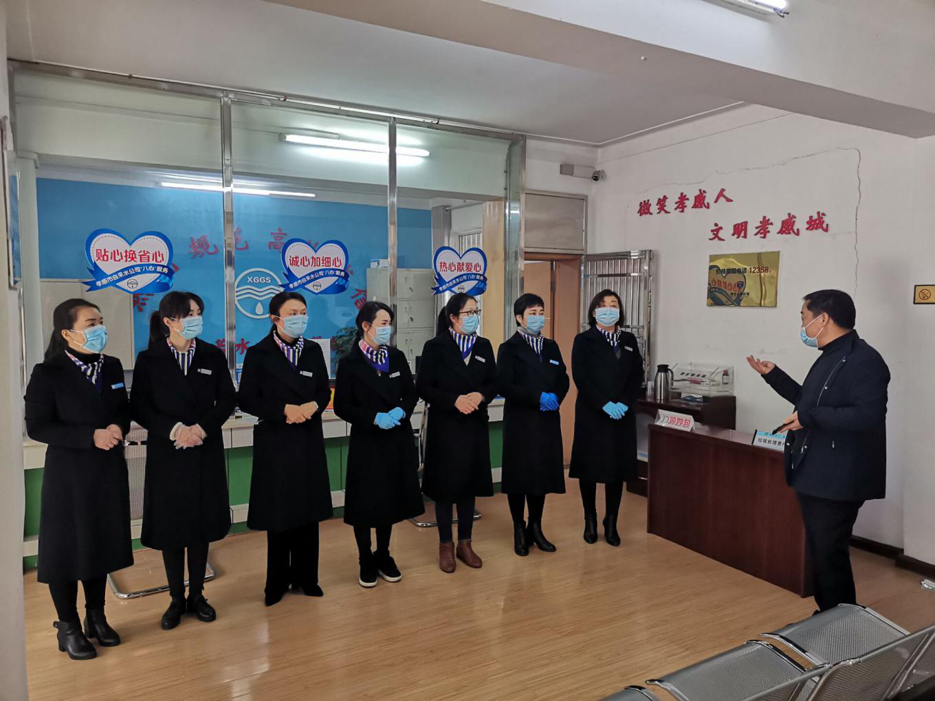 當天上午8:00左右,公司所轄的玉泉路、市民之家、城站路三個(gè)客服營(yíng)業(yè)網(wǎng)點(diǎn),早早開(kāi)門(mén)受理業(yè)務(wù)。大廳接待場(chǎng)所全面消殺、門(mén)口臨時(shí)增放候位板凳、布置安全防護設施等等。窗口人員按照要求配帶口罩,久違的微笑、貼心的問(wèn)候如沐春風(fēng)。