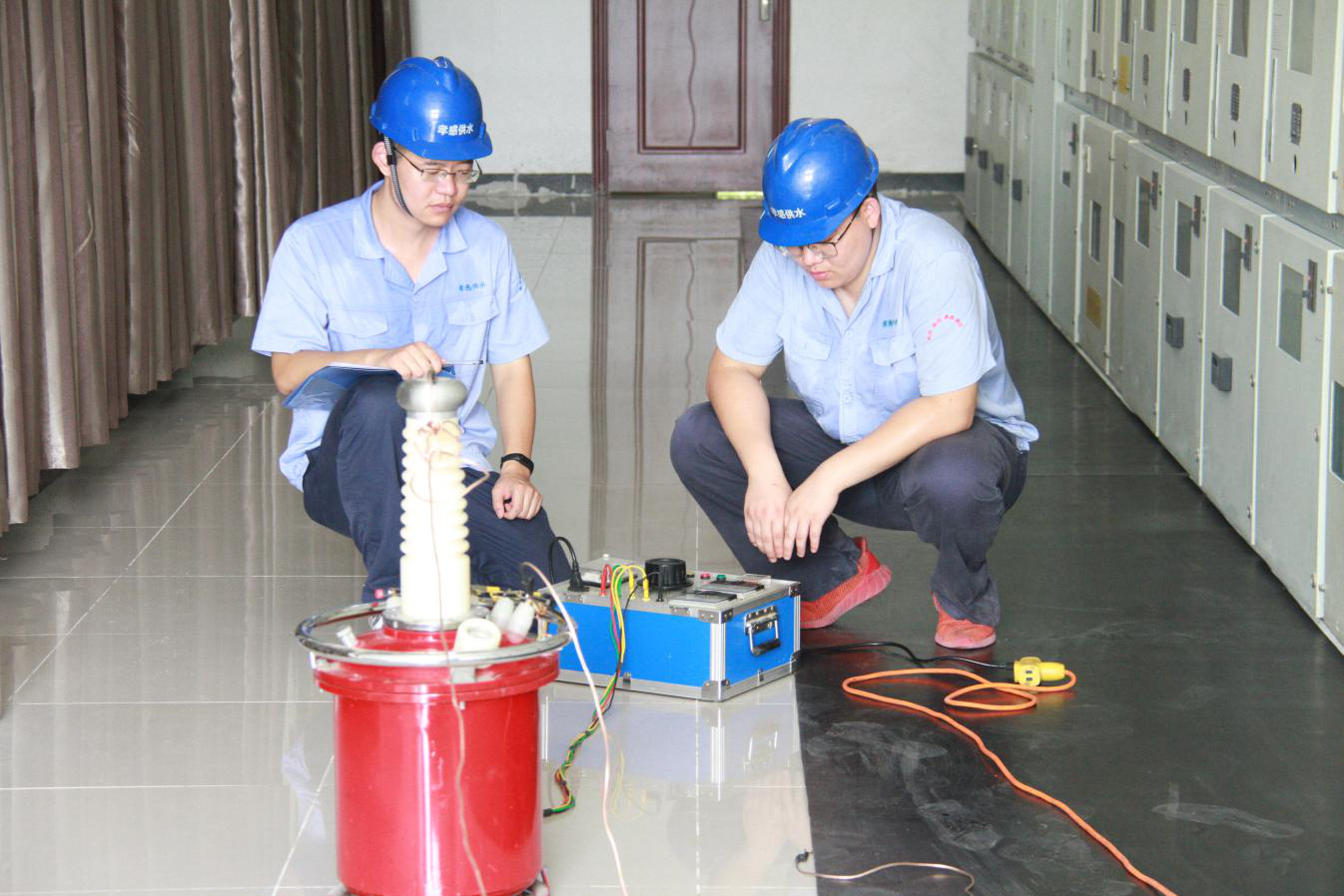 8月15日上午10點(diǎn),三名維修中心工作人員在三水廠(chǎng)配電間對施工用的絕緣工具進(jìn)行高壓試驗。維修人員告訴我們,這個(gè)作用是為了檢測絕緣工具效能是否完好,能否正常工作,如果絕緣出現問(wèn)題的話(huà),會(huì )帶來(lái)很大的安全隱患。