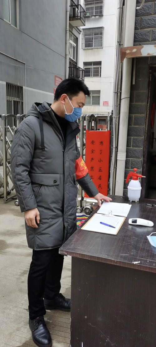 當我看到公司值班司機為保障供水勞于奔波,疲勞不堪時(shí),我踴躍加入到接送供水人員上下班、城區取水樣等保障工作中。但心中總有一股力量在推動(dòng)著(zhù)我,必須再做點(diǎn)什么。就這樣,2月6日,我毅然來(lái)到居住地三軍社區報到,決定為抗擊疫情出點(diǎn)力。我和另外兩名黨員被分到幸?;ǔ切^,接到分工后,迅速展開(kāi)工作。