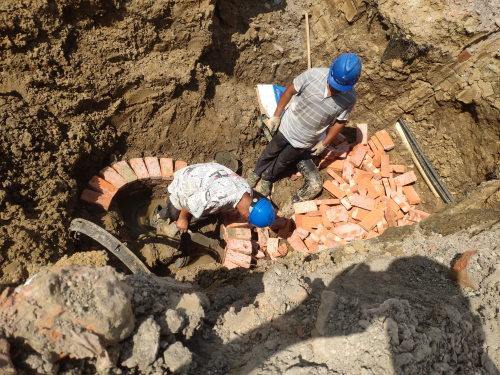 隨后我們來(lái)到了第二處:澴川路公安局前,由于市政工程導致此處水源口需要置換,前幾日將管道接好后,今天我們搶修工正在給該處總表閘閥修砌閘表井。